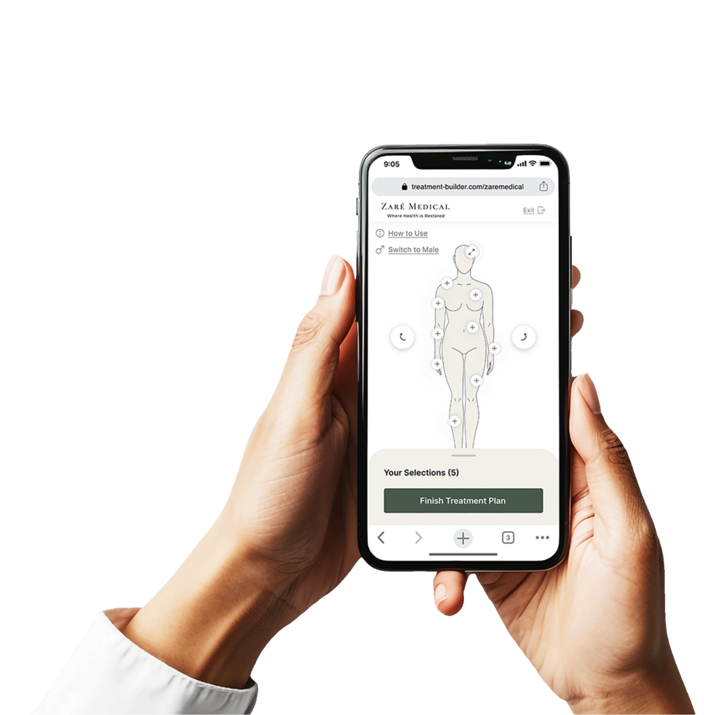Create a personalized care plan with our anti-aging treatments, hormonal balancing, and more using the treatment planning tool. Select the services you need, and our specialists will design a plan to help you reach your wellness and aesthetic goals.